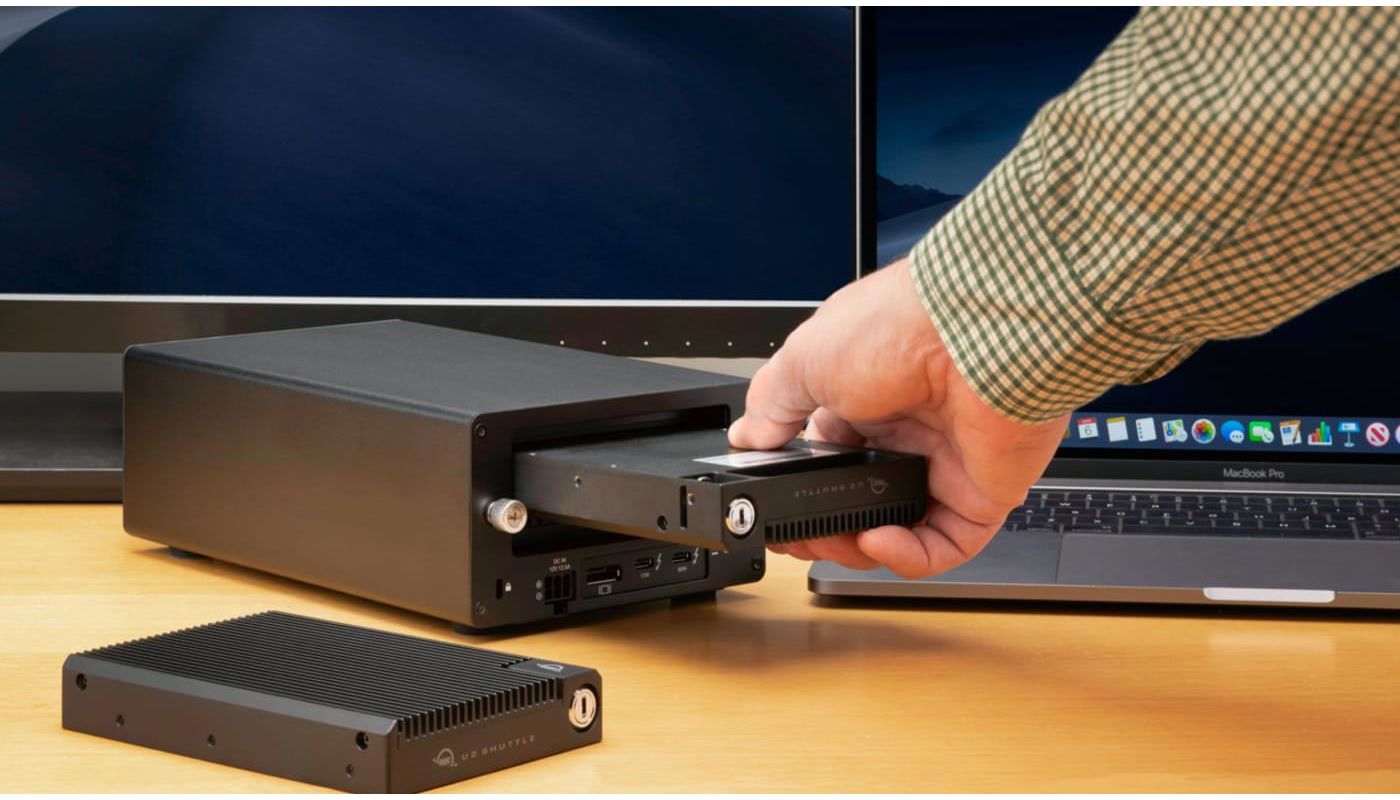 The OWC U2 Shuttle allows up to four M.2 drives to be installed in a 3.5” U.2 carrier (with RAID support.) In the same footprint as a traditional 3.5” hard drive, the U.2 carrier can silently interface and provide up to 32TBs of usable storage. The Shuttle can be docked with a range of OWC’s Thunderbolt 3 devices, including the Thunderbay Flex 8, the Mercury Helios 3s, and the Mercury Pro U.2 Dual.