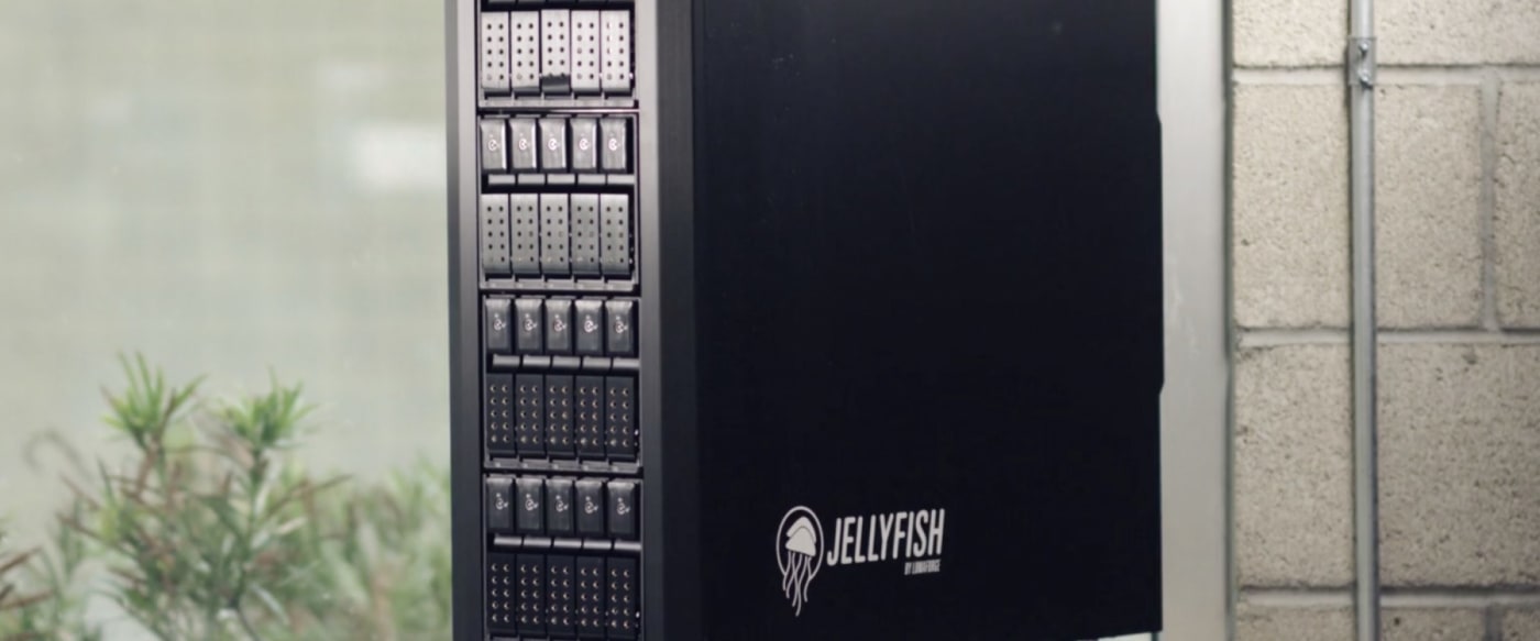The Jellyfish is a video workflow server designed for small, medium and large-sized teams that need to work off of the same footage at the same time, whether it's for one project or many. The Jellyfish comes in three different flavors, first of which is the Jellyfish Mobile. It's great for connecting up to 14 people directly for editing in HD or up to six people if you're wanting to edit in 4K. It also comes with a great little handle on top so that if you want to take it with you on set or with you to a live event, you absolutely can.