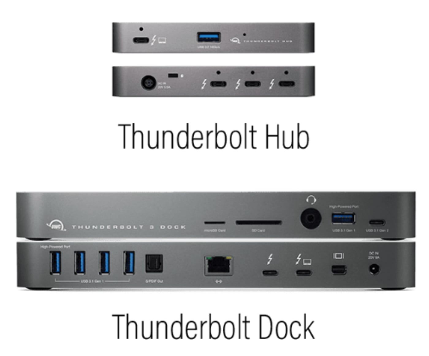 - If you need to simply expand the number of available Thunderbolt ports for external drives or other devices, you can do fine with a hub. The OWC Thunderbolt Hub is a great choice and can deliver up to 60w of power.