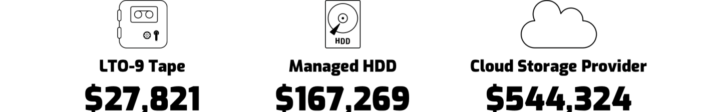 Cost of storage media for 120TB to 180TB of data: