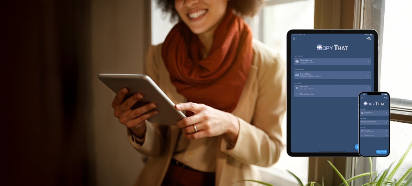 Whether you are a hobbyist out in the field taking nature photos, an influencer shooting daily videos, or a parent capturing that precious family event, Copy That Mobile helps you free up internal storage space while protecting your valuable content. The process is simple: Connect your iPhone or iPad to an external drive. Select the photos and videos you want to copy from your iPhone, iPad or iCloud account and how you want to copy them. Then just click the “Copy That” button and you’re done.