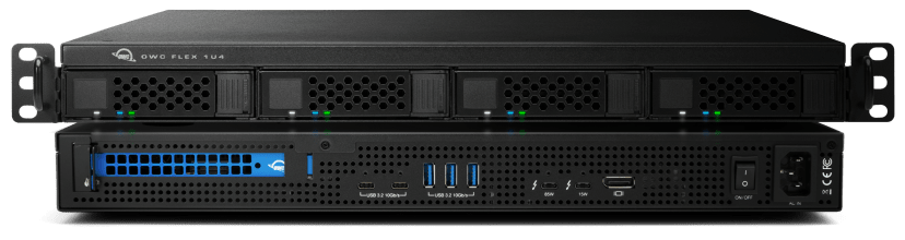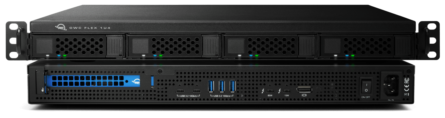 Now businesses, institutions, studios, and creatives can go beyond the desktop with the OWC Flex 1U4. This innovative 4-bay rackmount solution is ready to fuel your endeavors with the best combination of storage capacity, Thunderbolt transfer performance, drive flexibility, and device expandability. With FLEX in its name, you can count on Flex 1U4 to be your rackmount workflow game-changer.
